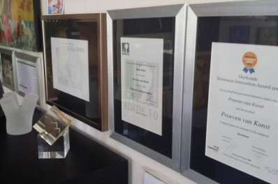 The Taste of Art trophy cabinet from left to right: ‘Horecava Jubileum Award 2010’ for the most innovative idea of the decade. In 2006, Taste of Art already won the overall ‘Horecava Innovation Award’.